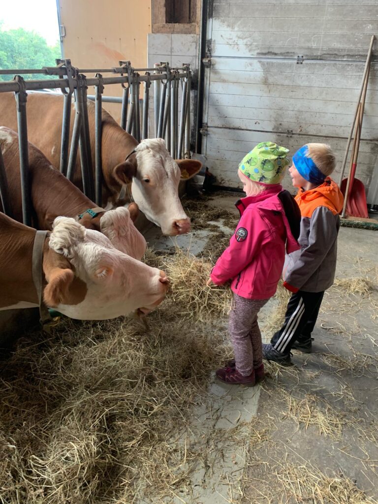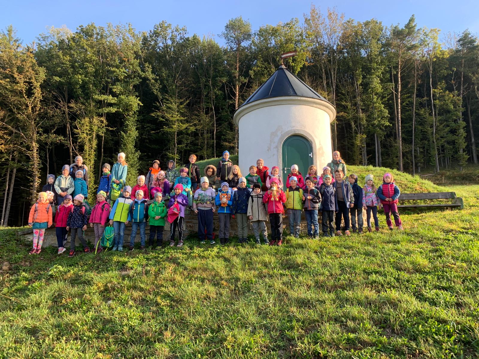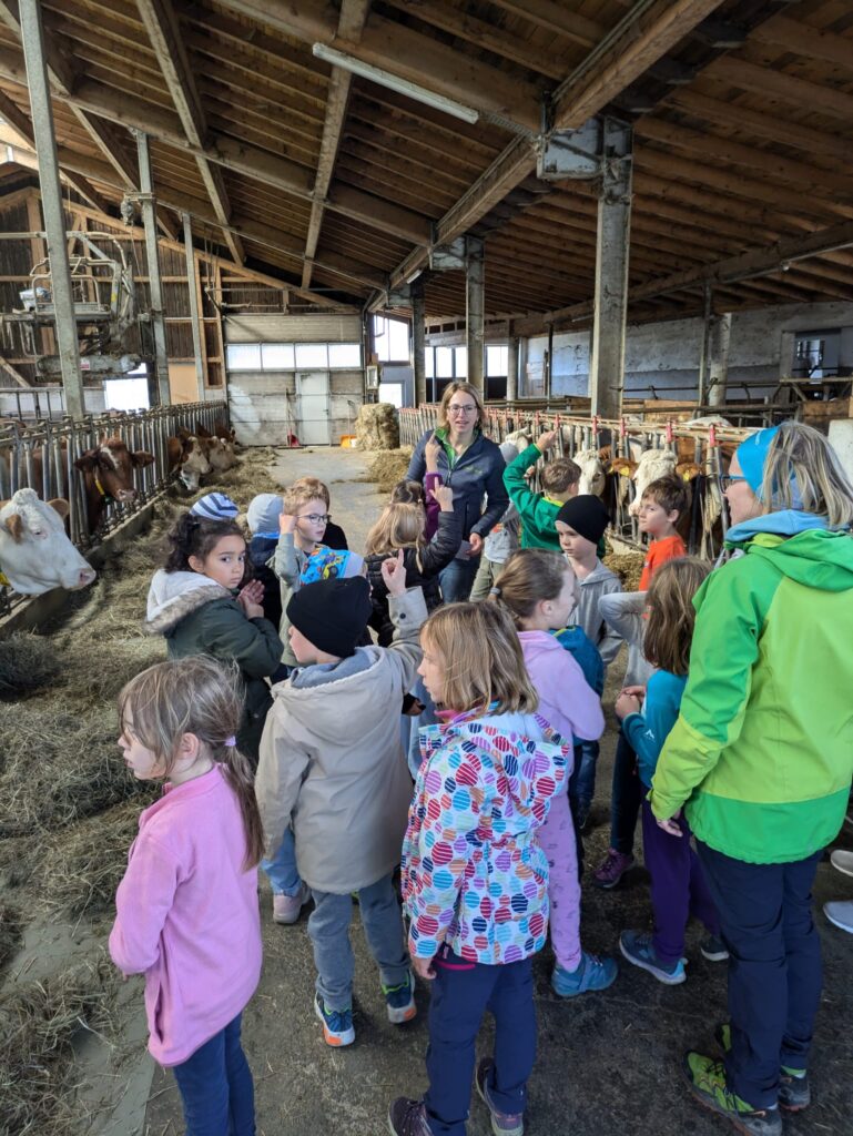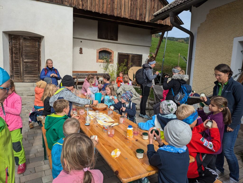 Am 30. September fand der erste Wandertag der 1. Klassen statt. Gemeinsam erkundeten die Löwenklasse (1a) und die Fuchsklasse (1b) die “Bosch-Runde”. Am Ende der Wanderung erwartete die Klassen ein besonderes Erlebnis: Familie Heindl vom Herbsthof lud die Kinder zum Butterschütteln ein. Neben spannenden Informationen rund um die Tiere am Hof konnten sie außerdem beim Melken der Kühe zuschauen. Zum Abschluss genossen die Kinder ihre selbst geschüttelte Butter auf frischem Bauernbrot – ein gelungener Ausflug voller Spaß und neuer Eindrücke!