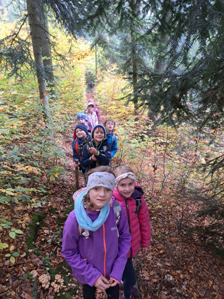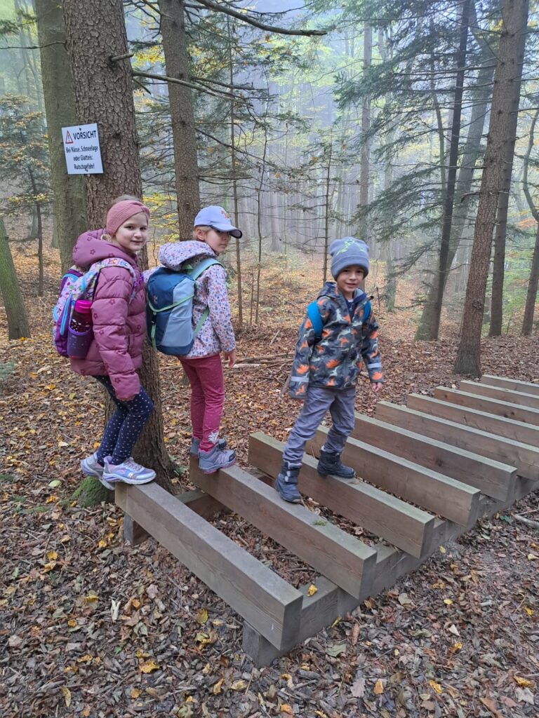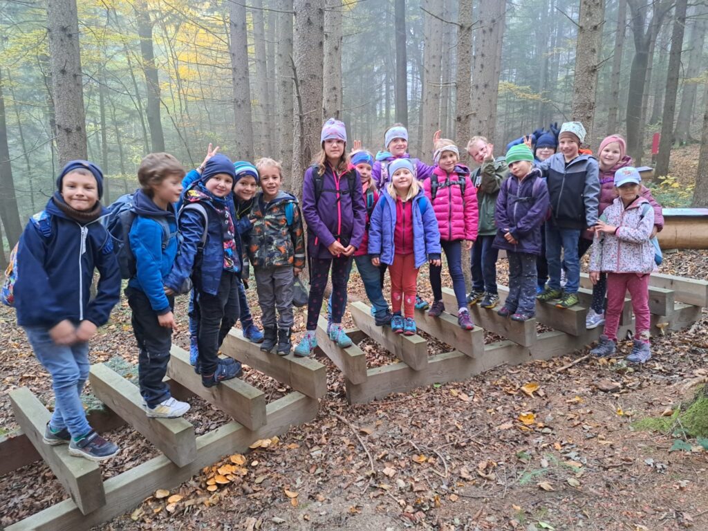 Am Dienstag, 22. Oktober 2024, fuhren die „Schäfchen“ der 2. Klasse mit dem Zug nach Hainfeld und wanderten anschließend über den Vollberg und das „Rote Kreuz“ nach Rohrbach zurück. Entlang des Klimawaldweges lernten die Kinder einiges über die Wichtigkeit des Waldes und unseren persönlichen Beitrag zum Klimaschutz. Begeistert probierten alle die Balancierstationen aus und hatten viel Spaß beim Erforschen des Waldes. Kurz vor dem Ziel ließ sich sogar die Sonne blicken, die sich lange hinter dem Herbstnebel versteckt hatte, was aber der guten Stimmung unter den braven Wanderern keinen Abbruch tat. 😊