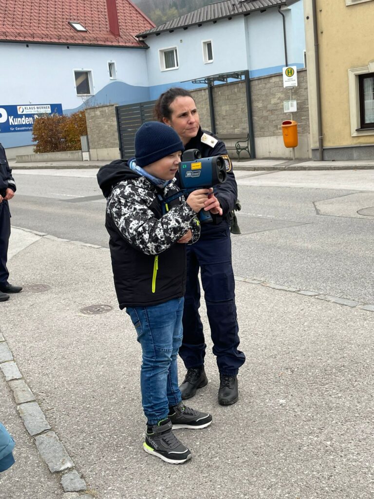 Höhepunkt an diesem Tag war die Geschwindigkeitsmessung mit der Radarpistole, die jedes Kind durchführen durfte.