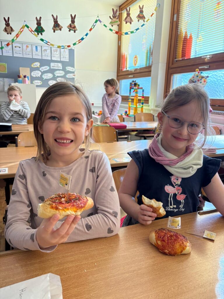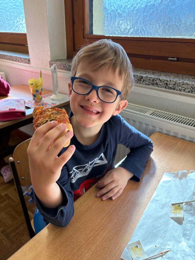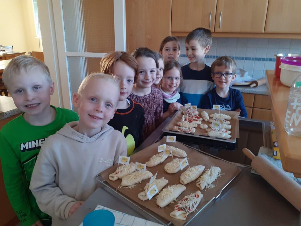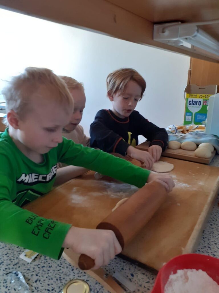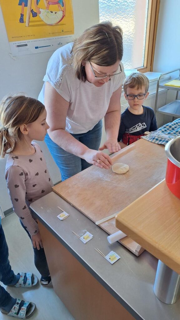 Drei engagierte Mamas besuchten die Fuchsklasse und backten gemeinsam mit den Kindern leckere Pizzastangerl und andere köstliche Weckerl. Mit viel Freude und Begeisterung kneteten, formten und verzierten die Kinder den Teig – und natürlich durfte auch das Naschen nicht fehlen!