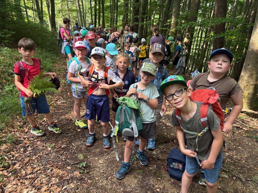 Ein besonderes Highlight war die Überraschung am Fußballplatz: Der Elternverein hatte eine köstliche Jause und ein erfrischendes Eis für alle vorbereitet. Während der Wanderung lösten die Kinder mit Begeisterung kleine Aufgaben, wie das Finden eines Zapfens, eines Efeu- oder Ahornblattes oder Birkenrinde.
